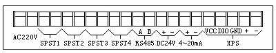 SPST1~SPST4為4路開(kāi)關(guān)量,分別對(duì)應(yīng)P03(Relay)菜單中Relay1~Relay4設(shè)置;