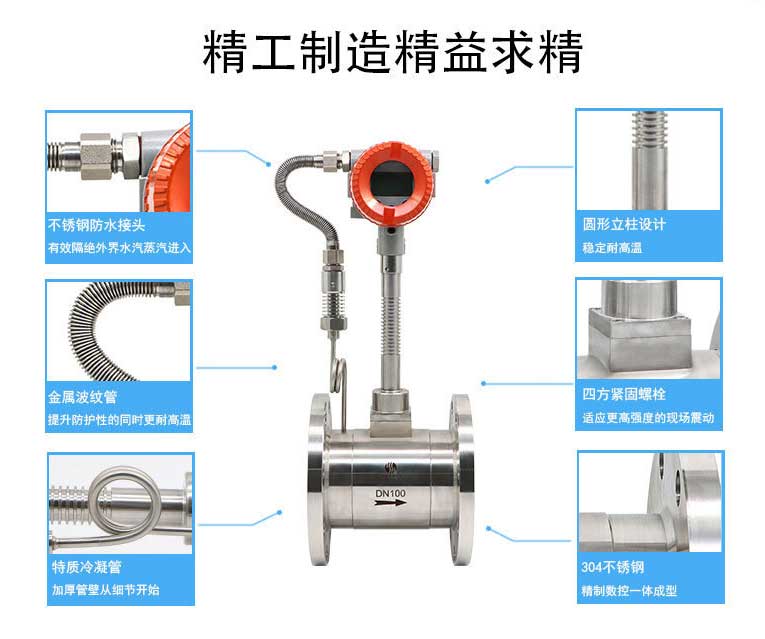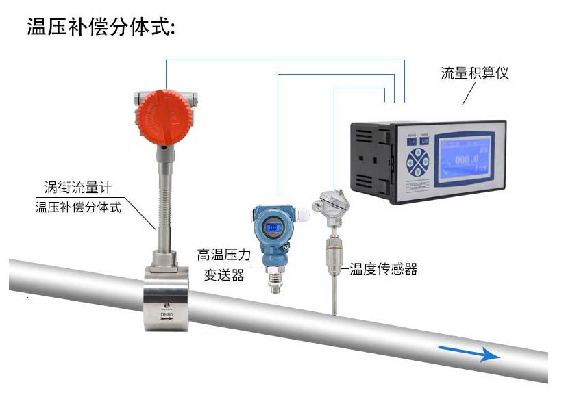 2、溫度補(bǔ)償一體型還帶有溫度傳感器,可以直接測(cè)量出飽和蒸汽的溫度并計(jì)算出壓力,從而顯示飽和蒸汽的質(zhì)量流量。