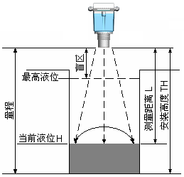 超聲波液位計量程指儀表能夠測量的距離,安裝高度TH應(yīng)小于量程。
