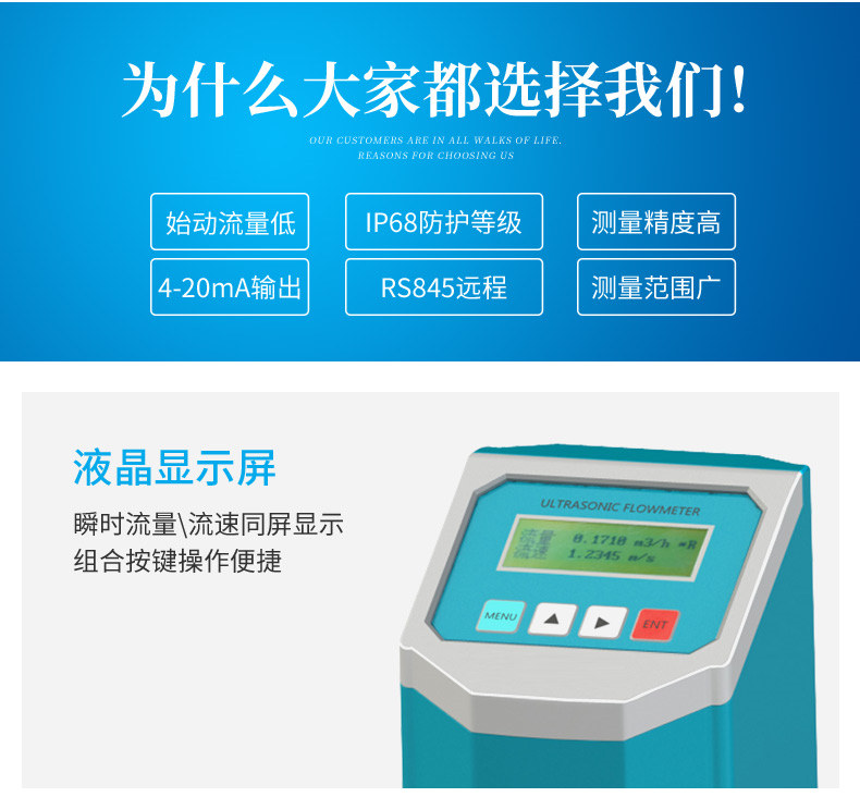 智能超聲波流量計(jì)基本原理及類型超聲波在流動(dòng)的流體中傳播時(shí)就載上流體流速的信息。因此通過接收到的超聲波就可以檢測(cè)出流體的流速,從而換算成流量。根據(jù)檢測(cè)的方式,可分為傳播速度差法、多普勒法、波束偏移法、噪聲法及相關(guān)法等不同類型的超聲波流量計(jì)。起聲波流量計(jì)是近十幾年來隨著集成電路技術(shù)迅速發(fā)展才開始應(yīng)用的一種。