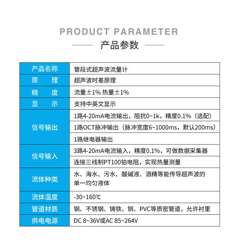 啟動(dòng)儀表運(yùn)行前,首先要對(duì)參數(shù)進(jìn)行有效設(shè)置,例如,使用單位制、安裝方式、管道直徑、管道壁厚、管道材料、管道粗糙度、流體類型、兩探頭間距、流速單位、zui小速度、zui大速度等。所有參數(shù)輸入正確,儀表方可正確顯示實(shí)際流量值