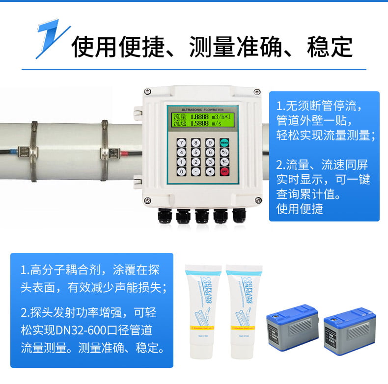 2、管道材料: 鋼,鑄鐵,PVC管材等超聲波可穿透的滿管,質(zhì)地致密,無嚴(yán)重腐蝕結(jié)垢,允許薄層質(zhì)密襯里;