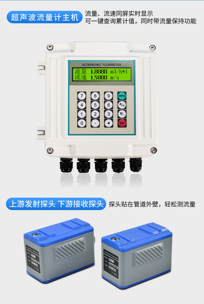 外夾式超聲波流量計(jì)利用了低電壓、多脈沖時(shí)差原理,采用高精度和超穩(wěn)定的雙平衡信號(hào)差分發(fā)射、差分接收數(shù)字檢測技術(shù)來測量順流和逆流方向的聲波傳輸時(shí)間,根據(jù)時(shí)差計(jì)算出流速。