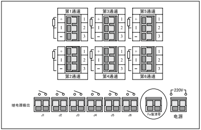 (3)每個(gè)通道的報(bào)警回差可設(shè)定,繼電器動(dòng)作時(shí)有指示燈提示