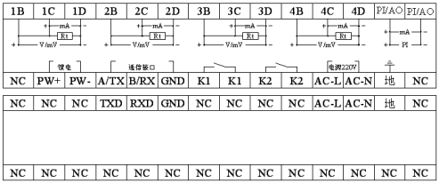 3、熱電阻: PT100、Cu50、G53、Cu100、BA1、BA2(要求三線電阻平衡,引線電阻‹10Ω);