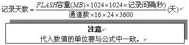 13、記錄時(shí)間:記錄時(shí)間的長(zhǎng)短與FLASH存儲(chǔ)器容量、輸入點(diǎn)數(shù)、記錄間隔有關(guān),計(jì)算公式如下: