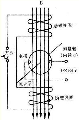 勵磁線圈 向方波脈沖勵磁時,將在與測量管軸線垂直的方向上產(chǎn)生一磁通量密度為 B 的工作磁場。此時,如果具有一定電導(dǎo)率的流體流經(jīng)測量管,將切割磁力線感應(yīng) 出電動勢 E。電動勢 E 正比于磁通量密度 B、測量管內(nèi)徑 d 與平均流速 V 的乘積,電動勢 E(流量信號)由電極檢出并通過電纜送至轉(zhuǎn)換器。轉(zhuǎn)換器將流量信號放大處理后,可顯示流量、總量,并能輸出脈沖、模擬電流等信號,用于流量的控制或調(diào)節(jié)。