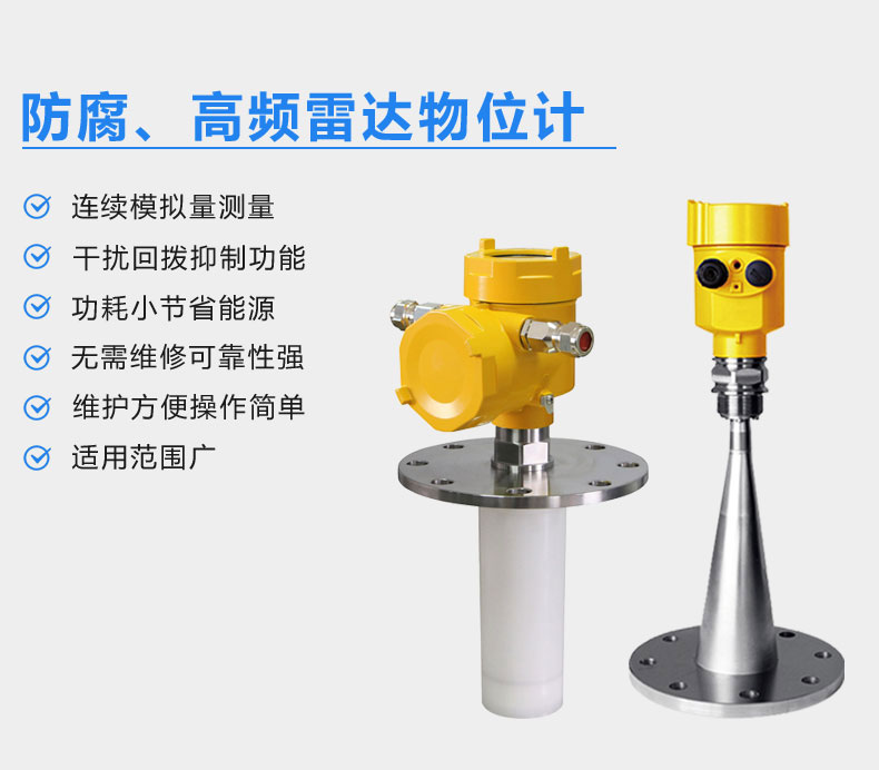 雷達用于對液體、漿料及顆粒料的物位進行非接觸連續(xù)測量,適用于溫度、壓力變化大、有惰性氣體或蒸汽存在的場合。它采用微波脈沖(PTOF)的測量方法,并可在工業(yè)頻率波段范圍內(nèi)正常工作。波束能量低,可安裝于各種金屬、非金屬容器或管道內(nèi),對人體及環(huán)境均無傷害。