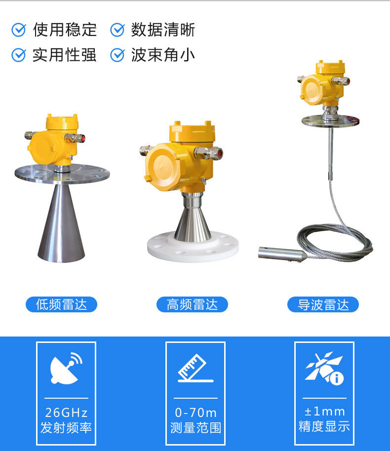 2、測量范圍:纜式:0-35m桿式、同軸式:0-6m;
