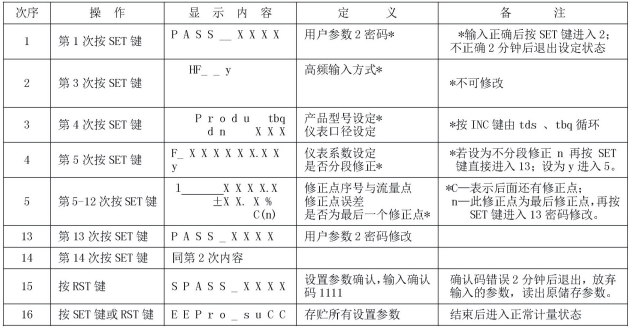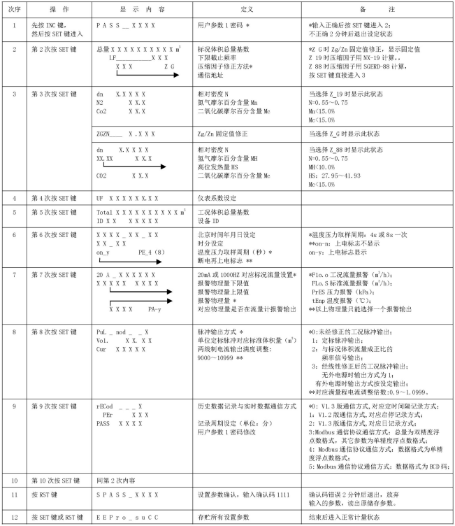 二、TBQZ型氣體渦輪番量計用戶參數(shù)的設(shè)定