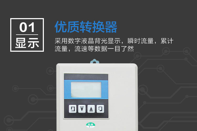 2、轉(zhuǎn)換器:即為智能二次表,其將流量信號(hào)放大處理,單片機(jī)運(yùn)算后,可顯示流量、累計(jì)量,并能輸出脈沖、模擬電流等信號(hào),用于流體流量的計(jì)量或控制。