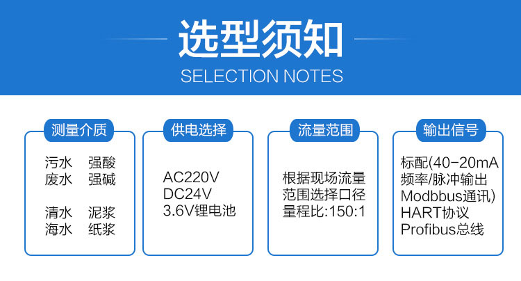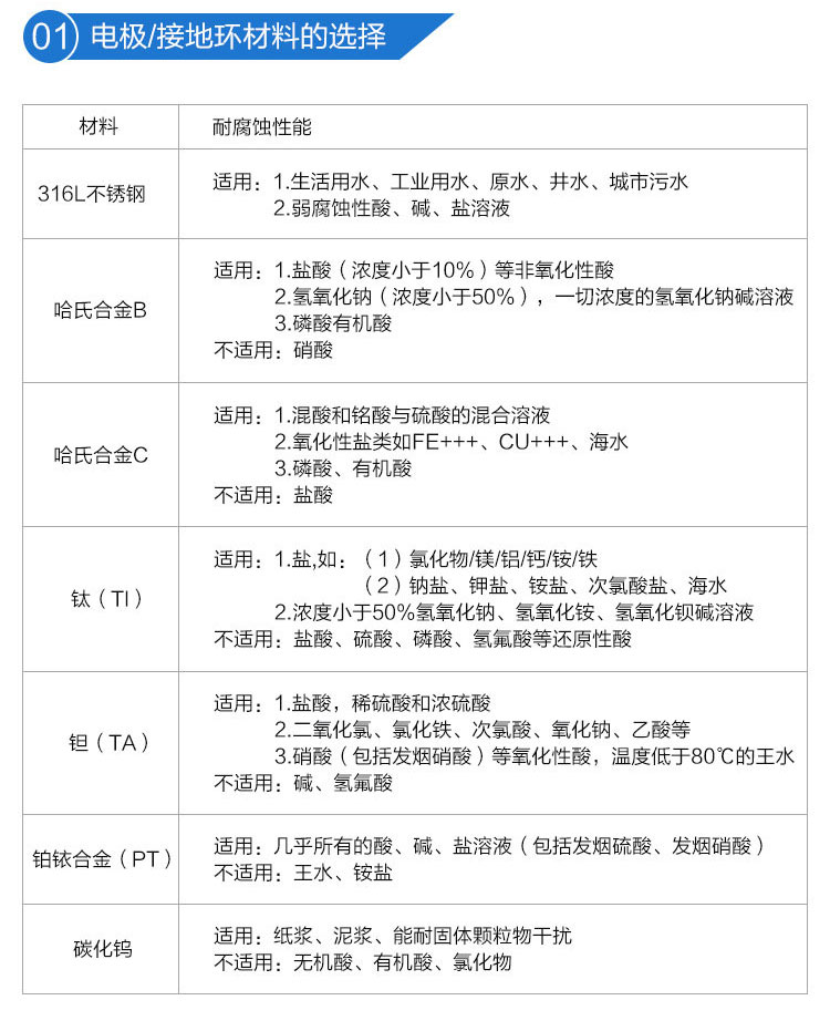 c、為適應(yīng)不同介質(zhì)測(cè)量的要求,傳感器的襯里和電極材料可以有多種選擇。