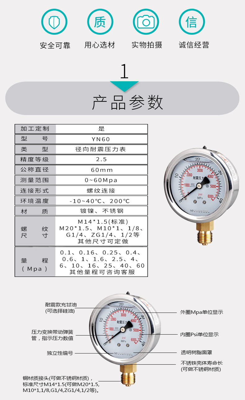 耐震壓力表可以適應(yīng)劇烈振動環(huán)境,耐受脈動介質(zhì)及沖擊載荷。不銹鋼全部采用不銹鋼材料制造,主要零件采用SS316L或者蒙乃爾、鈦合金等材料,適用于有腐蝕性氣體環(huán)境,可檢測腐蝕性較強介質(zhì)的壓力或真空,壓力表指示穩(wěn)定清晰。