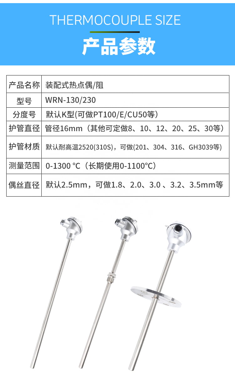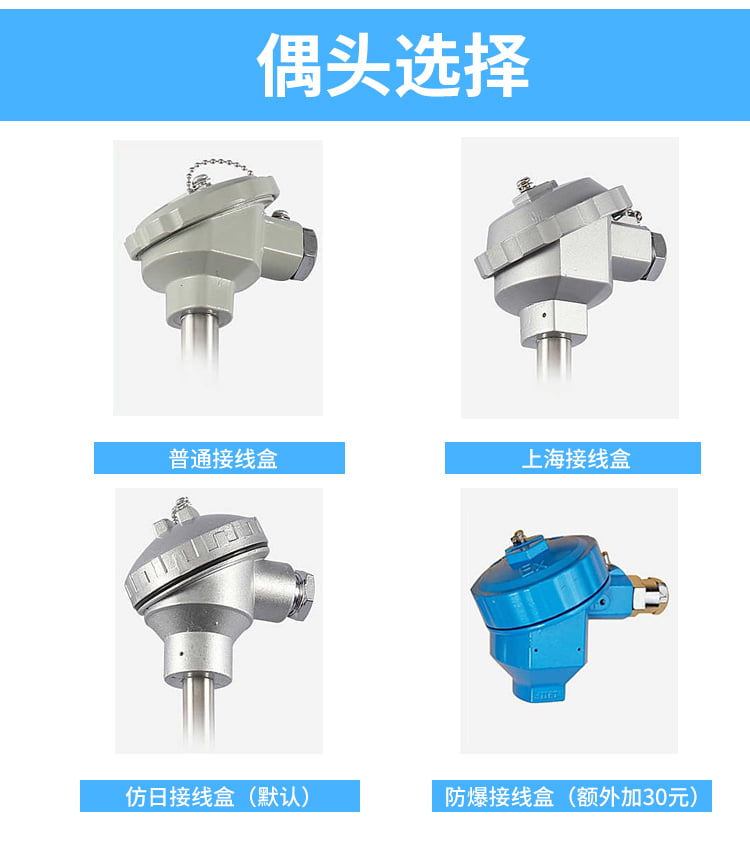 熱電偶的熱電動(dòng)熱將隨著測(cè)量端溫度升高而增長(zhǎng),它的大小只與熱電偶材料和兩端的溫度有關(guān)、與熱電極的長(zhǎng)度、直徑無(wú)關(guān)。各種的外形常因需要而極不相同,但是它們的基本結(jié)構(gòu)卻大致相同,通常由熱電極、絕緣套保護(hù)管和接線盒等主要成分組成。