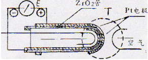 傳感器的檢測組件是氧化鋯電解質(zhì)管,工作原理圖如下: