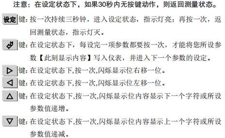 共有六個運用鍵,其中有丈量狀態(tài)運用鍵和設定狀態(tài)運用鍵, 選用優(yōu)質薄膜觸摸式鍵盤,按鍵時伴有洪亮的蜂音。