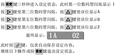 小數(shù)點位置的提示符是:d,在設定顯現(xiàn)范圍前,先設定小數(shù)點位置。小數(shù)點位置設定代碼范圍是0~3,其含義是0對應個位〔第六位數(shù)碼管〕,1對應十位〔第五位數(shù)碼管〕,2對應百位〔第四位數(shù)碼管〕, 3對應千位〔第三位數(shù)碼管〕。從例二中我們看到顯現(xiàn)范圍是-100.0~100.0℃,小數(shù)點位置在十位上,也就是說在第五位數(shù)碼管上顯現(xiàn),其對應代碼是1。因而按以下操作停止小數(shù)點位置設定。