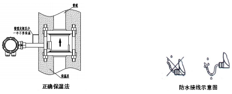 2、流量計應防止裝置在有強磁場干擾,空間小和維修不便當?shù)膱鏊?br /> 3、流量計應防止裝置在溫度較高、受設備熱輻射或含有腐蝕性氣體的場所,若須 裝置時,須有隔熱通風措施。