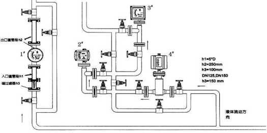 3、為了確保流量計(jì)的丈量精確性,應(yīng)在流量計(jì)的進(jìn)口端增加不少于10DN的直管段,出口端不少于5DN的直管段,丈量時(shí)調(diào)理控制閥必需裝置在流量計(jì)的下游。