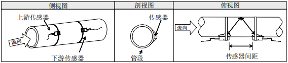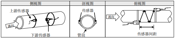 外夾式超聲波流量計裝置方式共有三種。這三種方式分別稱為V法、Z法和N法。 普通在小管徑100~300mm(4"~12")時可先選用V 法;V法測不到信號或信號質(zhì)量差時則選用Z法;管徑在 300mm(12")以上或丈量鑄鐵管時應(yīng)優(yōu)先選用Z法。