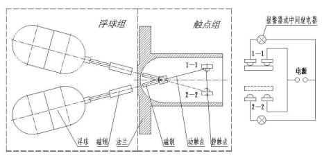 浮球在隨液位升降過程中,只需當浮球處于上、下兩個極限位置時,動觸點才會在靜觸點間接通或斷開,從而使外接的控制電器接通或斷開,進而控制信號報警裝置報警或啟停電動泵。而在浮球隨液位升降過程中,并無連續(xù)信號輸出,只堅持原有的接通或斷開。