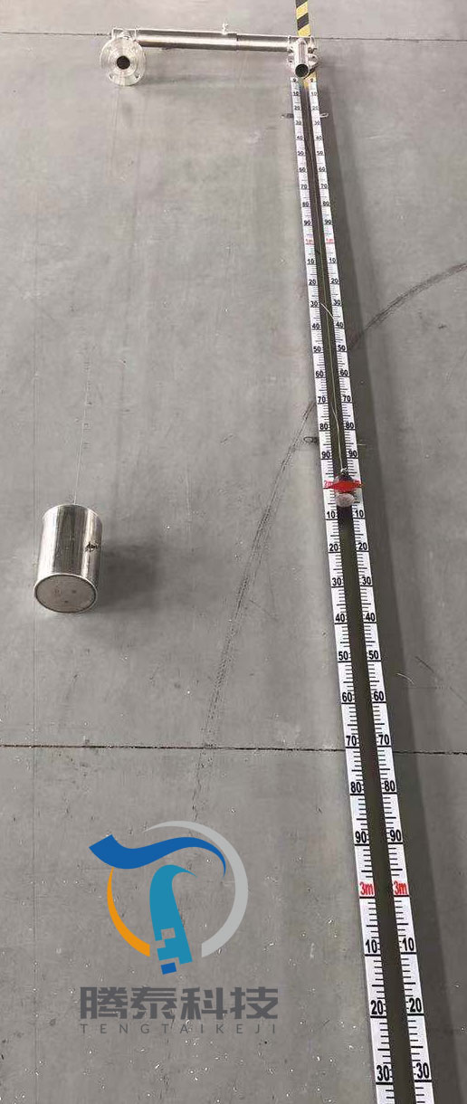 在儀表安裝時(shí),罐內(nèi)應(yīng)還未有被測(cè)介質(zhì),浮標(biāo)在罐內(nèi)的底部時(shí),重錘指針部分的紅色尖頭指示應(yīng)指在標(biāo)尺丈量范圍的頂部“零”值上,否則要調(diào)整鋼絲長(zhǎng)度。