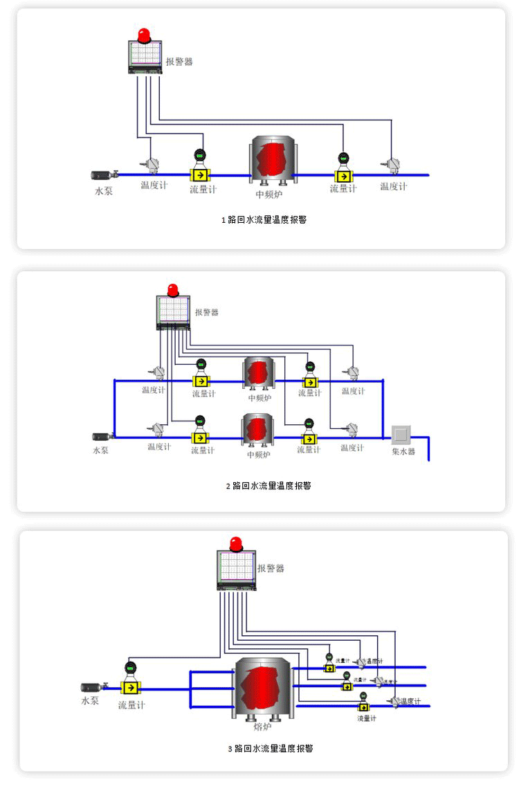 流量差報警儀主要應(yīng)用于電爐水路報警范疇,主要功用是監(jiān)測顯現(xiàn)進水流量、出水流量、進水壓力、出水壓力、進水溫度、出水溫度、進出水流量差值,這幾個參量。經(jīng)過數(shù)字監(jiān)測,反響出電爐水路的流量、溫度、壓力相關(guān)的值的變化,一旦報警,報警安裝會發(fā)出刺耳的聲光報警,以到達對電爐水路停止實時監(jiān)測的效果。
