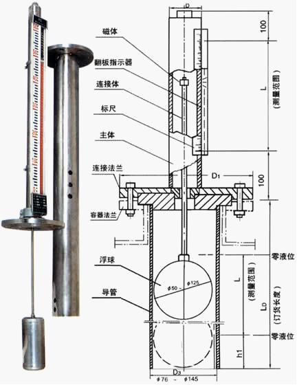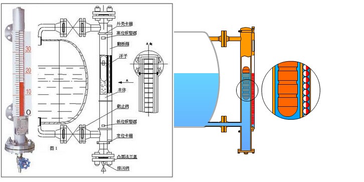 二、側裝式磁翻板液位計工作原理
